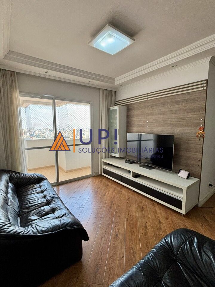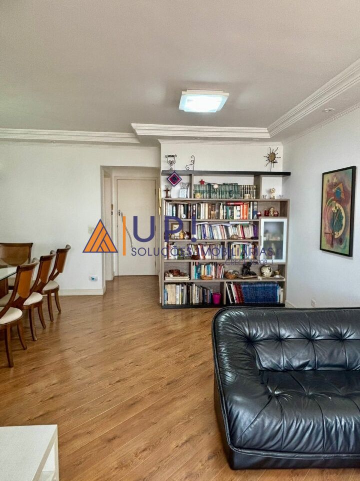 Apto com sala para 3 ambientes e sacada.