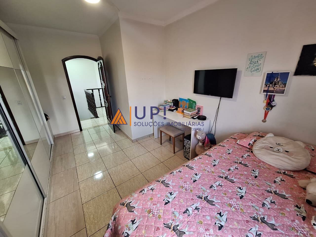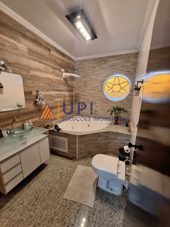 Andar superior, 4 dormitórios sendo uma suíte com closet e armários embutidos. 3 dormitórios com armários, banheiro social com banheira de hidromassagem, hall de distribuição.